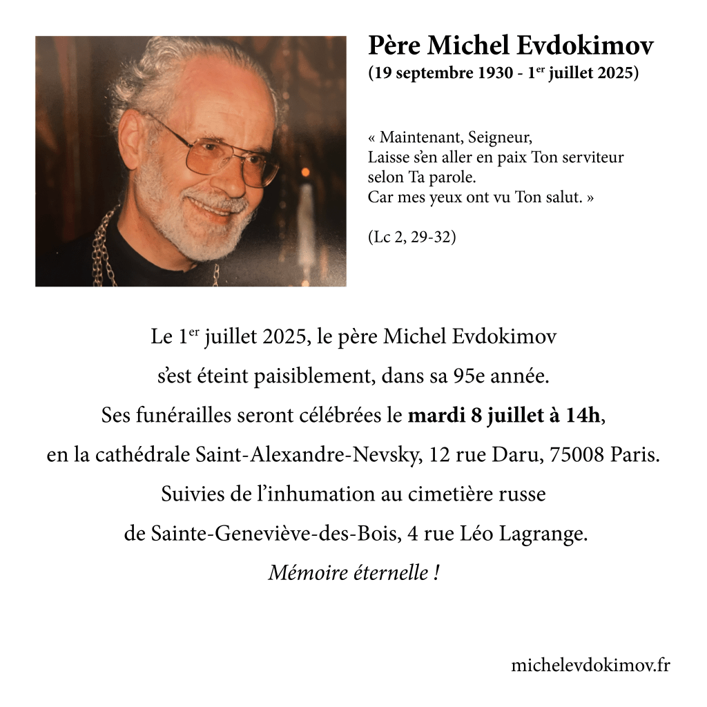 Père Michel Evdokimov (1930-2025) était un penseur et théologien français et archiprêtre orthodoxe, et professeur de littérature comparée. Engagé dans l’œcuménisme, il était un témoin et une voix d’une église orthodoxe unie, vivante et ouverte sur le monde.